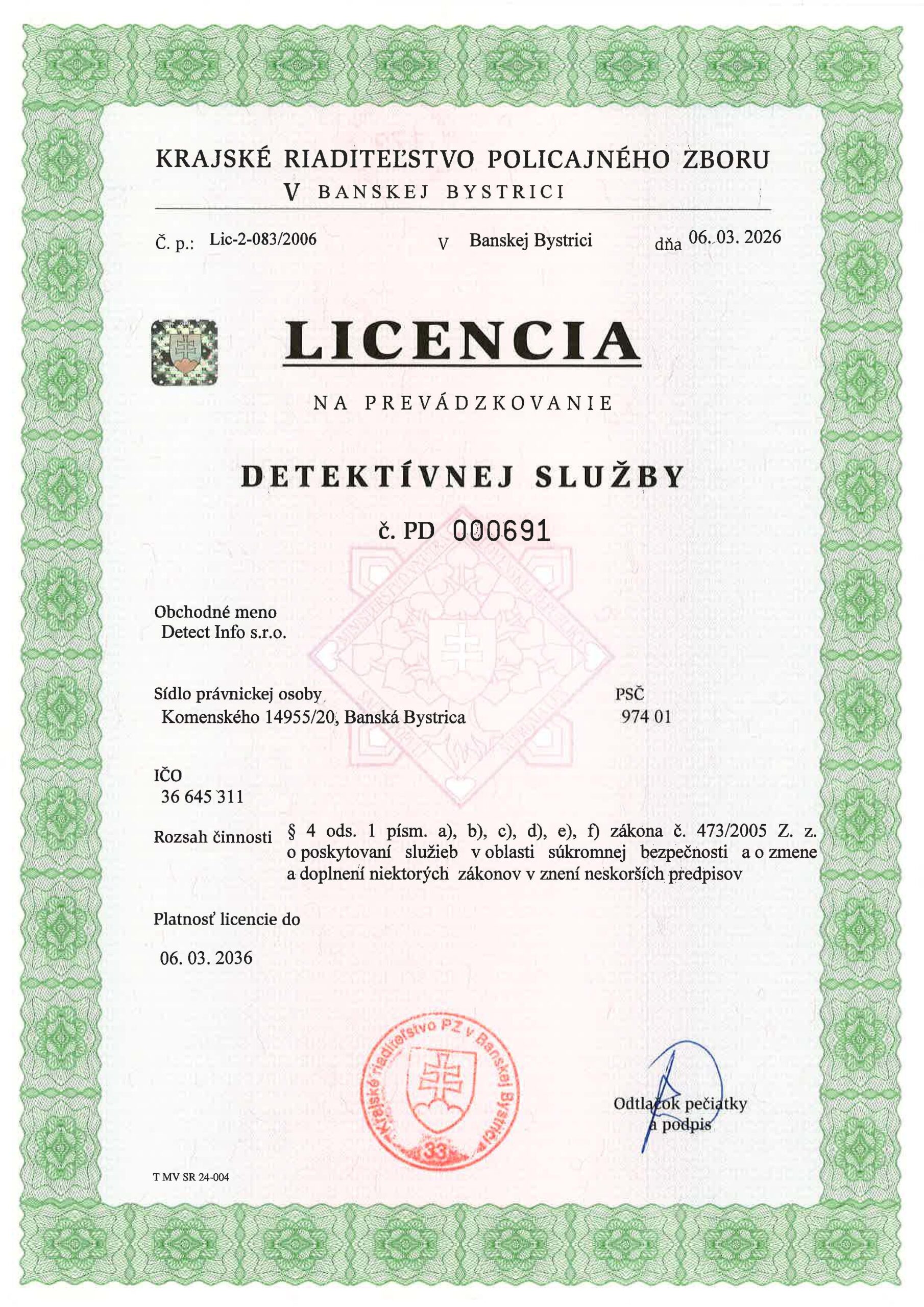 Klient doposiaľ nemal možnosť získať a využívať informácie, ktorými sa z titulu svojej právomoci mohli zaoberať len štátne orgány, napríklad polícia, súdy, prokuratúra a podobne. Možnosť klienta využiť v tejto oblasti služby našej spoločnosti chápeme ako prehĺbenie právnej istoty občana, pretože náš klient, či už je to fyzická alebo právnická osoba, nie je odkázaný len na výsledky šetrenia vyššie spomenutých orgánov štátu.